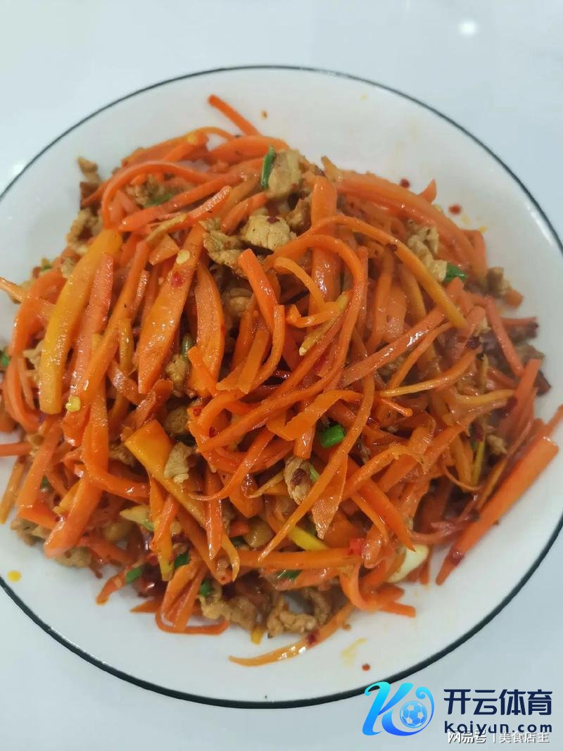5. 加入胡萝卜丝,连接翻炒,至胡萝卜丝变软,加盐调味即可。
