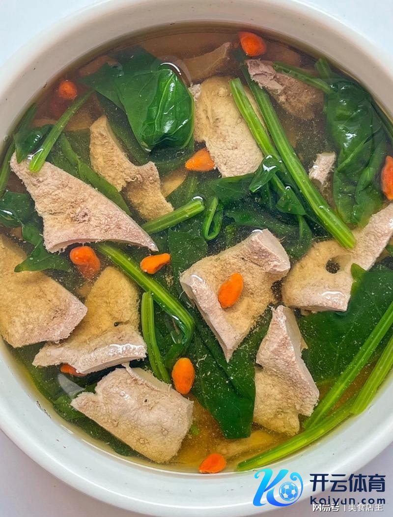 菠菜富含维生素和铁,猪肝富含铁和维生素 A,两者搭配有助于补血和提升免疫力。