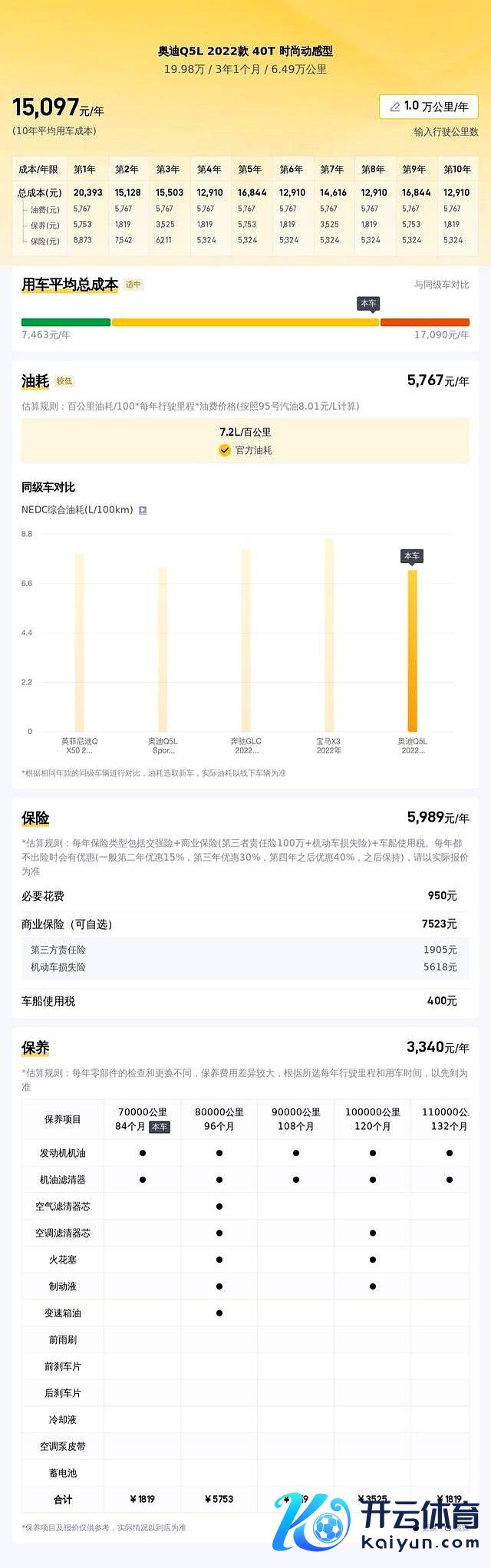 这辆Q5L,估算下来一年笼统用车本钱省略1.5万左右。