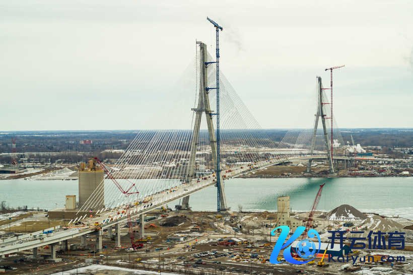 在好意思国底特律市与加拿大温莎市之间的边境线上,一座耗资64亿好意思元成立的清新桥梁已接近完工。这座被定名为“戈迪·豪海外大桥(Gordie Howe bridge)”的建筑原来定于本岁首通车,本应成为北好意思汽车工业供应链的当代化新动脉。