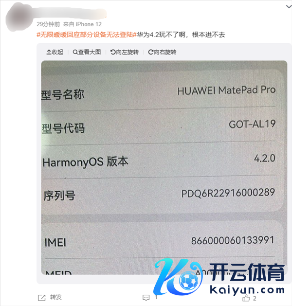 凭证网友响应,系统版块为鸿蒙OS 4.2的华为MatePad Pro也无法参加游戏。