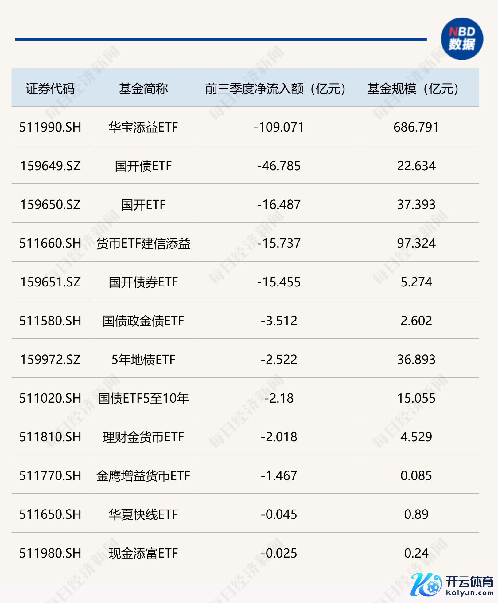 受此影响,货币型ETF受到资金抛售。前三季度,华宝添益ETF净流出资金超百亿元,最新界限降至686.89亿元。