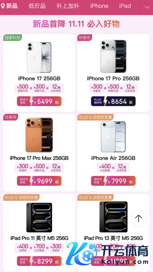 具体来看,iPhone 17 Pro系列可领300元惊喜券,20日晚8点可用,其中256G版iPhone 17 Pro平直低至8699元,PLUS会员平直只需8654元起;iPhone 17 Pro Max低至9699元起,PLUS会员平直只需9649元起。256G版iPhone 17可重复500元国度补贴、300元以旧换新补贴,平直低至5499元还能享12期免息,PLUS会员平直只需5469元起;iPhone Air新品现货预订,下单可享12期免息、以旧换新补贴400元福利,加购AppleCare碎屏电板保还能享9折、新通达iCloud更能专享85折。