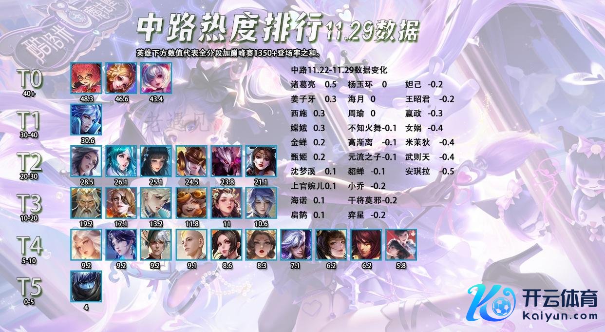 这一周的变化就惟有一个,那等于哪吒优化升级后的出场率飙升,当今关于出装铭文和分路还不是极端的理解,依然处在一个缔造阶段。等负责上线一周后会初始统计国服出装铭文,到技术就不错得出相比靠谱的分路和出装。