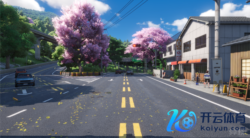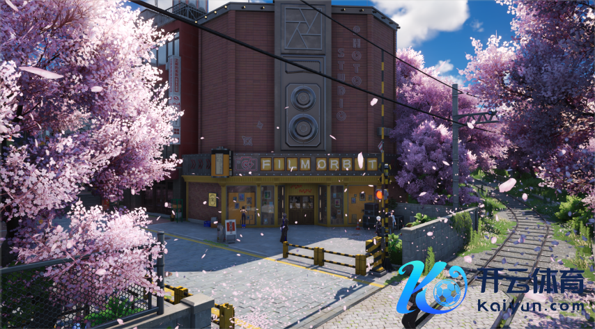 除了“写实”以外,那些充满幻想元素的“写意”场景在海特洛市相通存在,且十分执东谈主眼球。你能看到列车在海面上行驶,也能看到车站里樱花冉冉飘落,粉色花瓣铺在了月台和铁轨上。