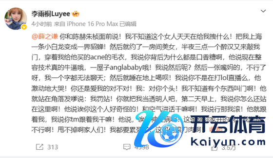 这也曾是李雨桐三天内的第三次爆料,从3月2日运转,她便接连向薛之谦发难:先是指控薛之谦暗里嘲讽张杰“唱歌土”,重提其2017年《吐槽大会》上“四没找红东说念主女友辅佐”的争议言论,暗指张杰借谢娜资源上位;同日还控诉薛之谦暗里吐槽高磊鑫“绝不在乎,每天休眠15小时起步”,称其闺蜜“全是大佬的小三”,甚而说起演员王晓晨被薛“骂成狗”却暗里相似聊天。爆料数小时后,她又改变执行自称“开打趣”,苍黄翻覆的操作让东说念主捉摸不透。