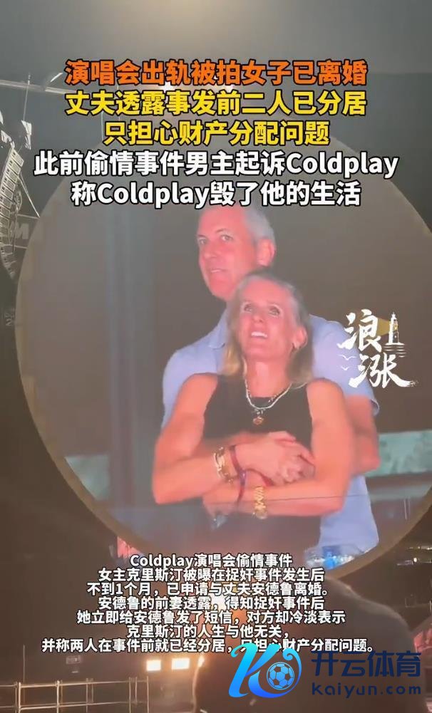 谁能念念到体育游戏app平台,一场群众珍贵标演唱会,竟成了一出狗血离异大戏的现场直播导火索?就在酷玩乐队(Coldplay)波士顿那场被亿万网友围不雅的"直播捉奸"事件发生不到一个月,事件女主角——科技公司 Astronomer 的 HR 总监克里斯汀 · 卡伯特(Kristin Cabot)——已细致向新罕布什尔州法院提交恳求,条目与丈夫安德鲁离异。