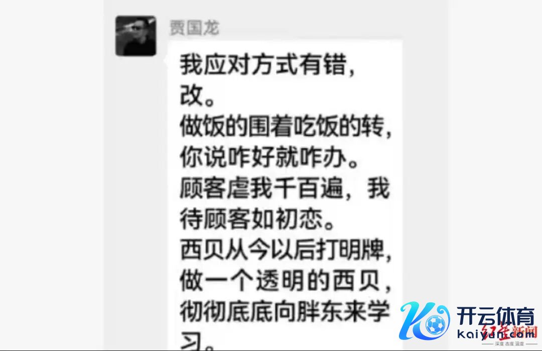 西贝首创东说念主贾国龙说念歉:我搪塞模式有错,改;以后打明牌,向胖东来学习西贝首创东说念主贾国龙说念歉:我搪塞模式有错,改;以后打明牌,向胖东来学习