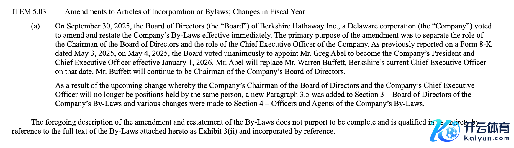 伯克希尔・哈撒韦修改公司法律解说,将董事长、首席本质官职位分开伯克希尔・哈撒韦修改公司法律解说,将董事长、首席本质官职位分开