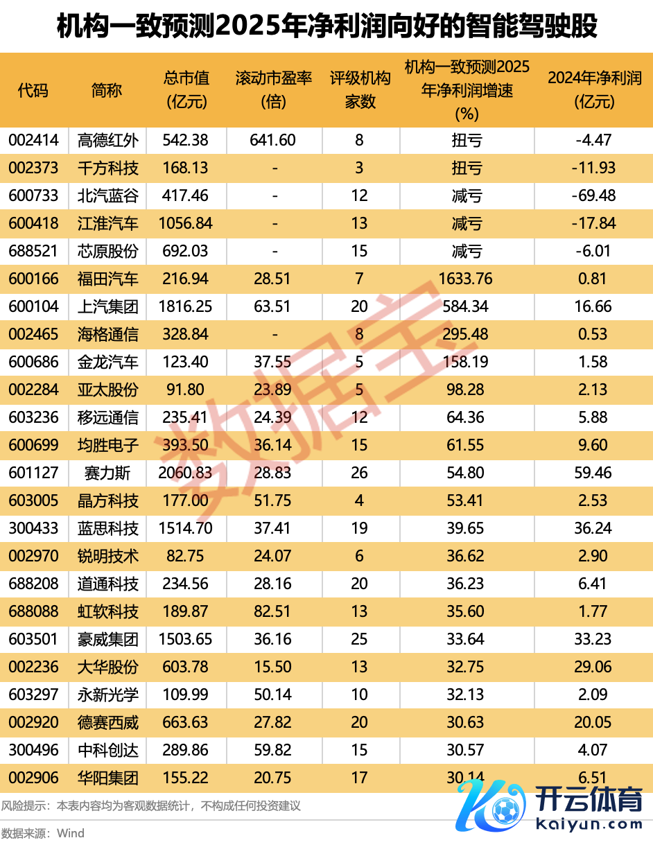 机构一致展望2025年净利润向好的智能驾驶股一览机构一致展望2025年净利润向好的智能驾驶股一览