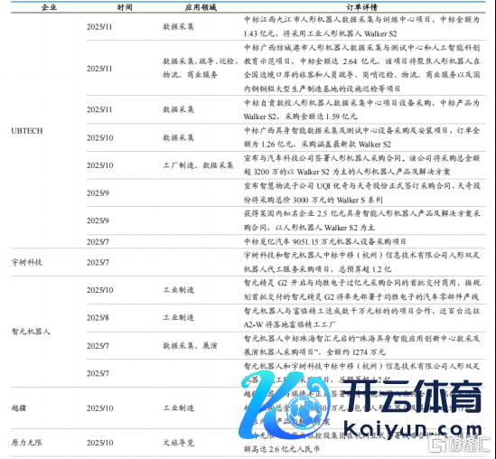 表:2025年下半年以来部分驰名机器东谈主企业订单情况梳理