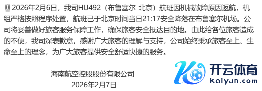 海航就HU492航班因机械故障原因返航致歉海航就HU492航班因机械故障原因返航致歉